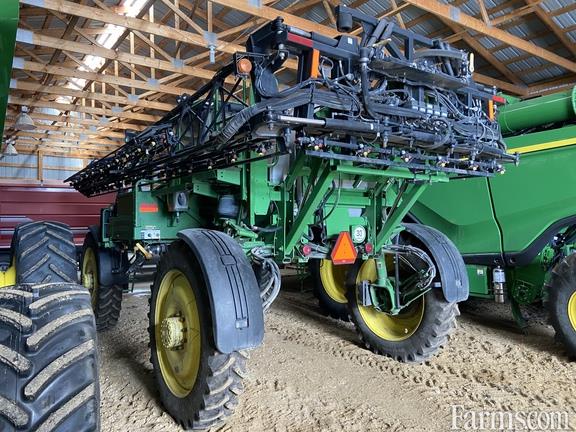 Boom Width: 100-Foot, ExactApply: No, Guidance Display: Yes, Guidance Receiver: Yes, Guidance-ready: Yes, Hydraulic Tread Adjust: Yes, Nozzle Spacing: 20 in, Tank: Stainless, Tire Width: Narrow, Specifications: John Deere 6.8L 245HP; 4WD Hydro Powertrain; In Crop Firestone 380/90R46 Tires w/ Fenders; Firestone 520/85R38 Float Tires; Stainless 800 gal Tank; 100' Steel Boom w/ Poly Plumbing & 20" Nozzle Spacing; Norac 3 Sensor Boom Height Control; Manual Side Fill Solution System; Auto Air Spring Suspension; Standard Operators Station w/ Radio & Buddy Seat; Halogen Lighting PKG; 4 Air Lift Crop Dividers;