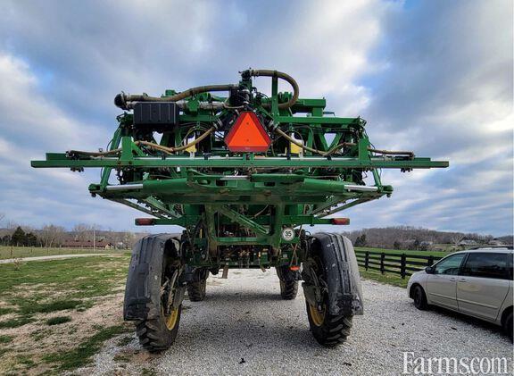 Boom Leveling: Yes, Boom Width: 120-Foot, ExactApply: Yes, Guidance Display: Yes, Guidance Receiver: Yes, Guidance-ready: Yes, Hydraulic Tread Adjust: Yes, Nozzle Spacing: 15 in, Options: Direct Injection 235-gallon System, See and Spray™: No See and Spray™, Tank: Stainless, Tire Width: Narrow, Traction Control: Yes,
