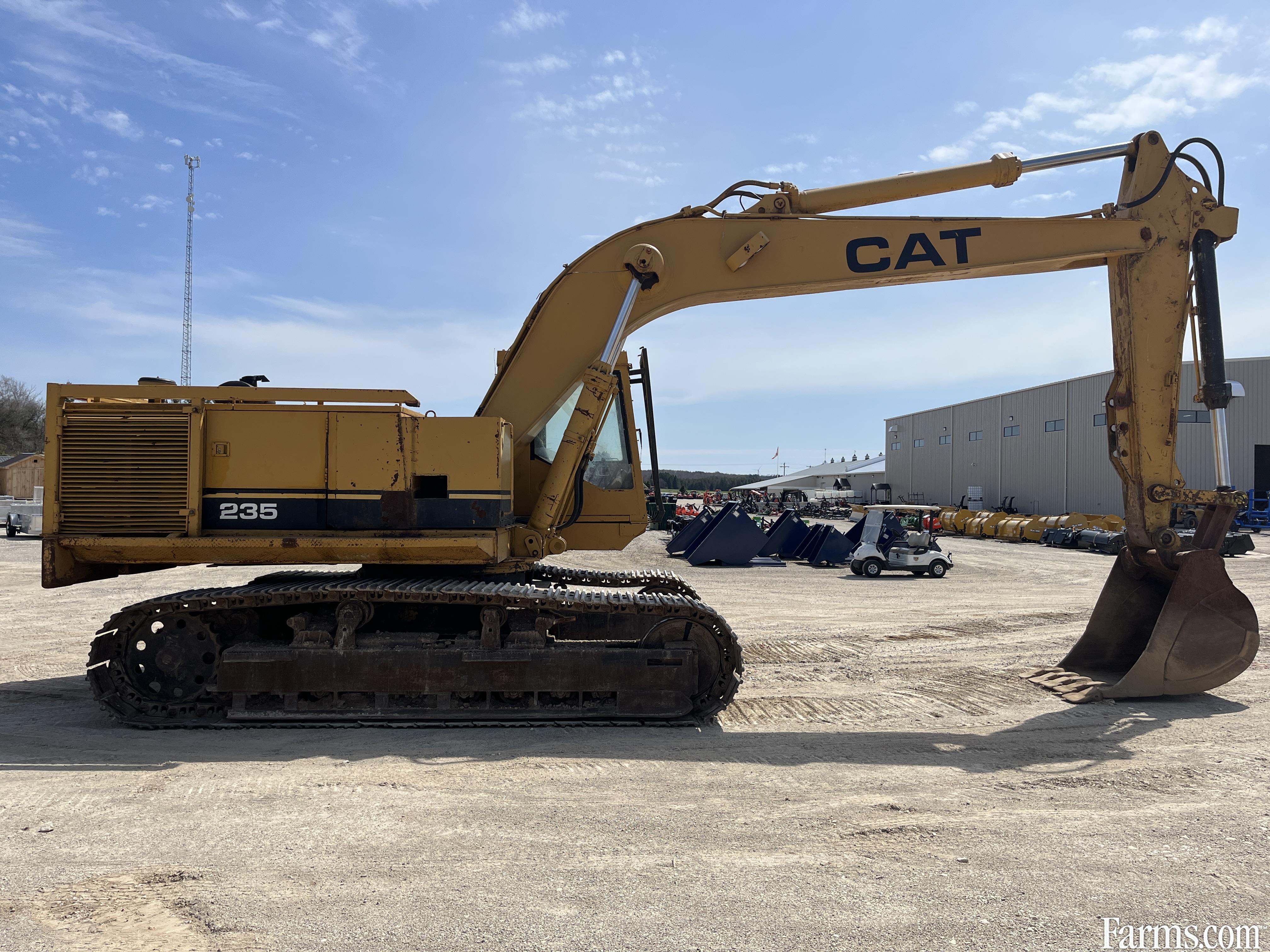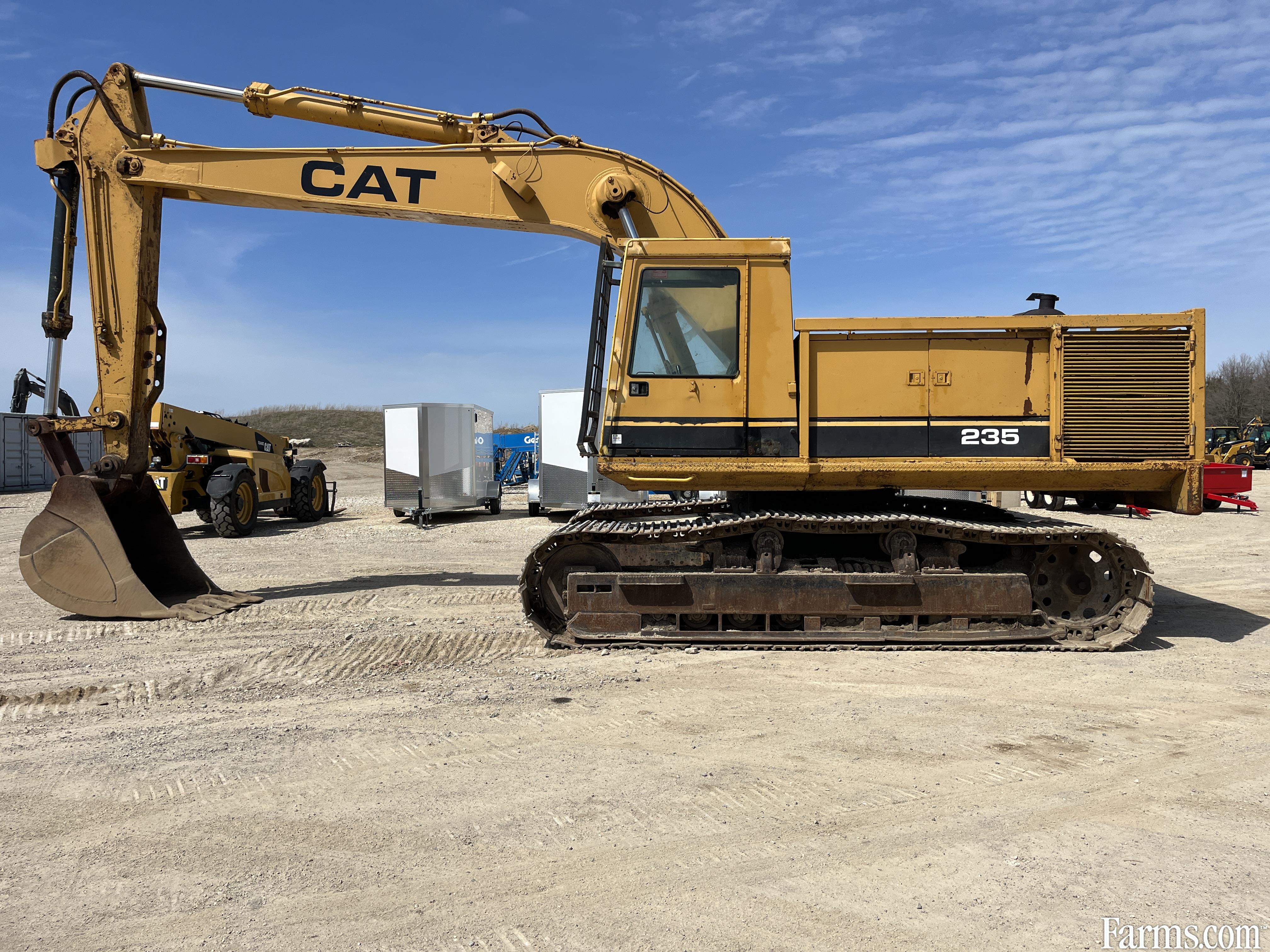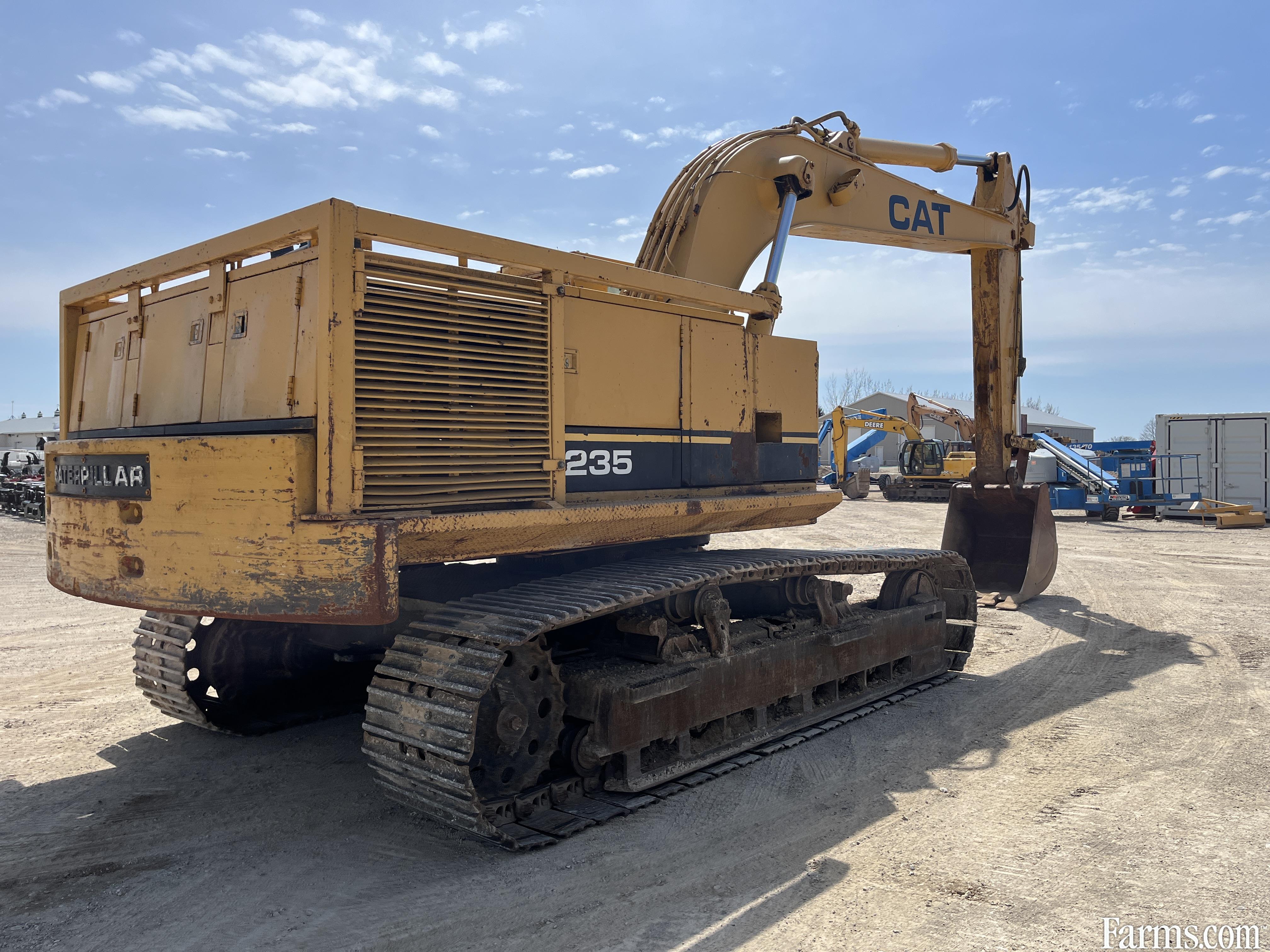 1973-1986 Caterpillar 235 excavator powered by a cat diesel engine. Enclosed cab with glass intact. Hour meter reads 4898. Located in Maxwell Ontartio