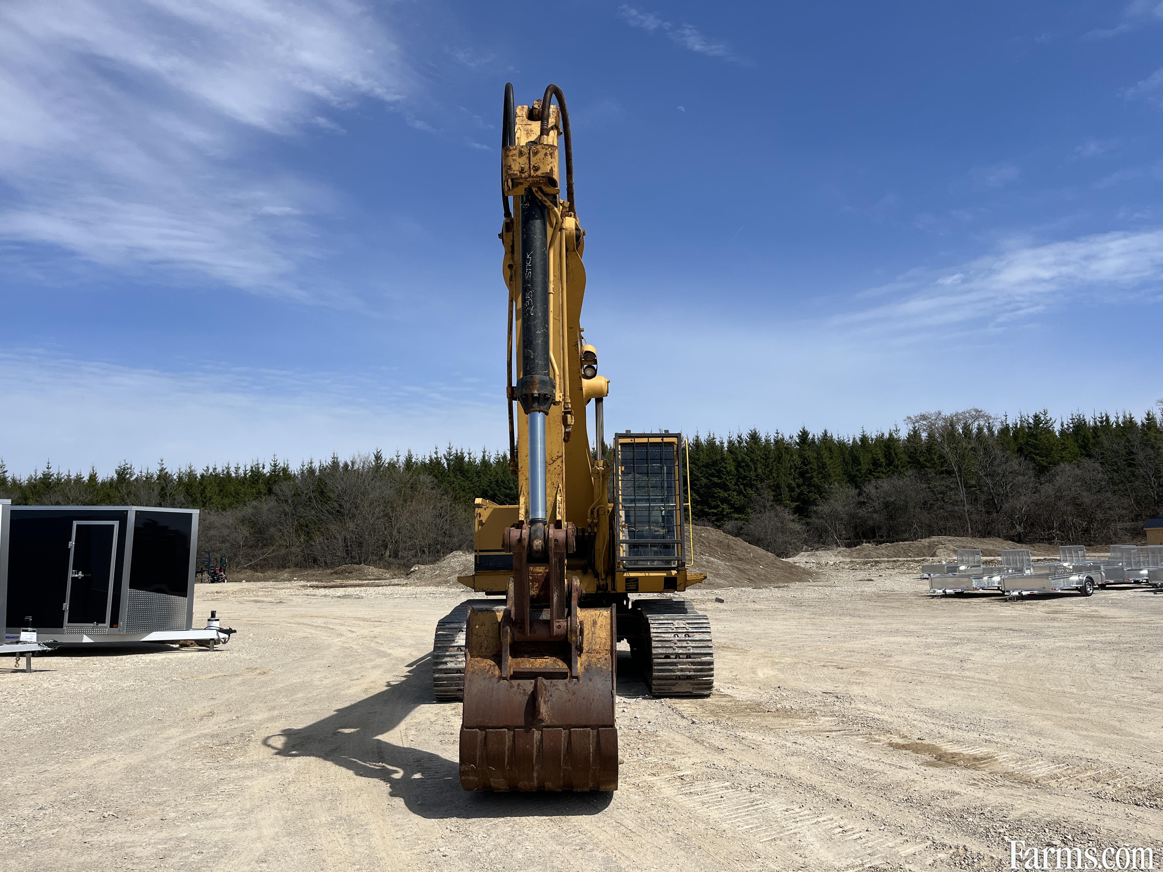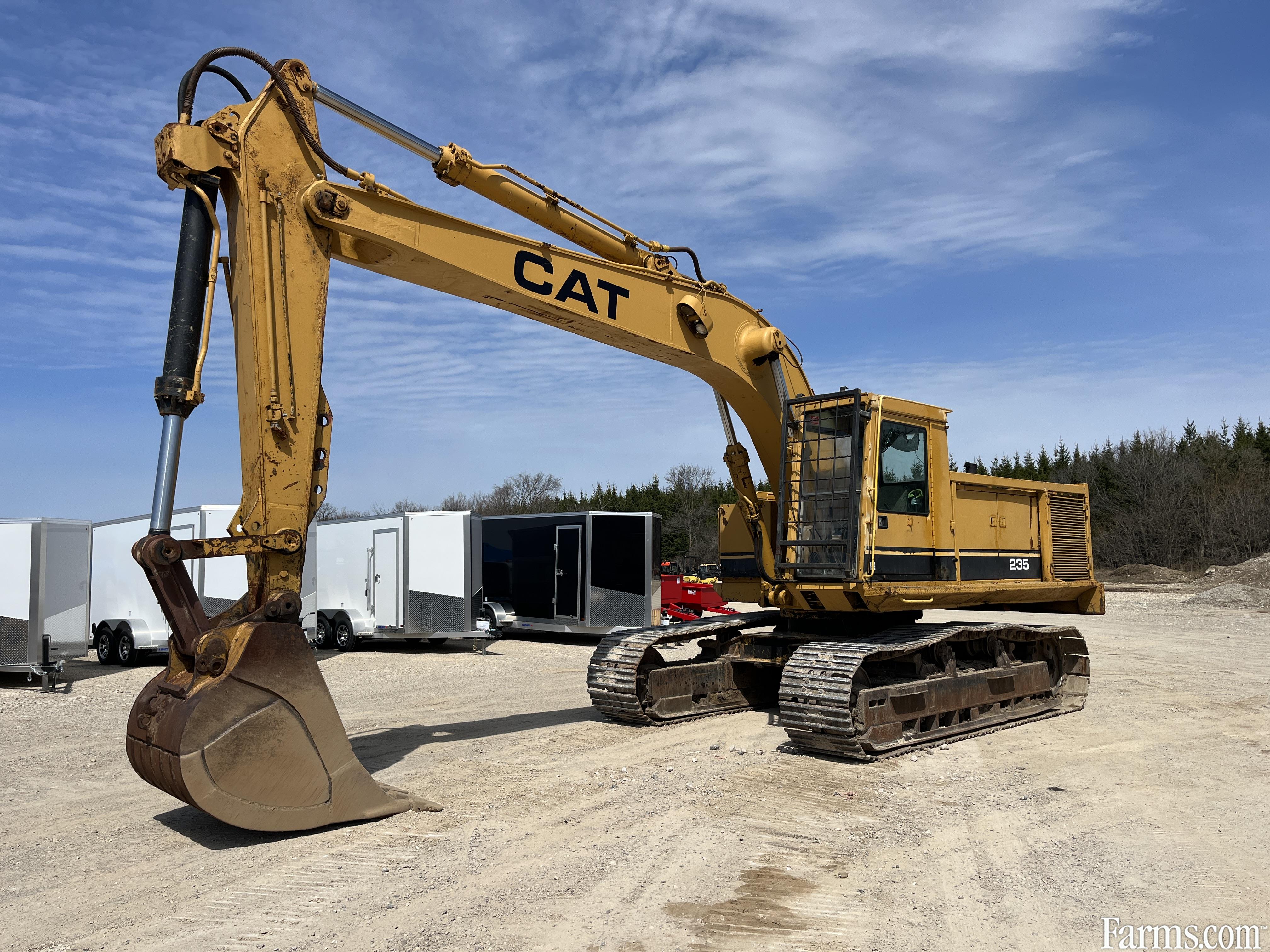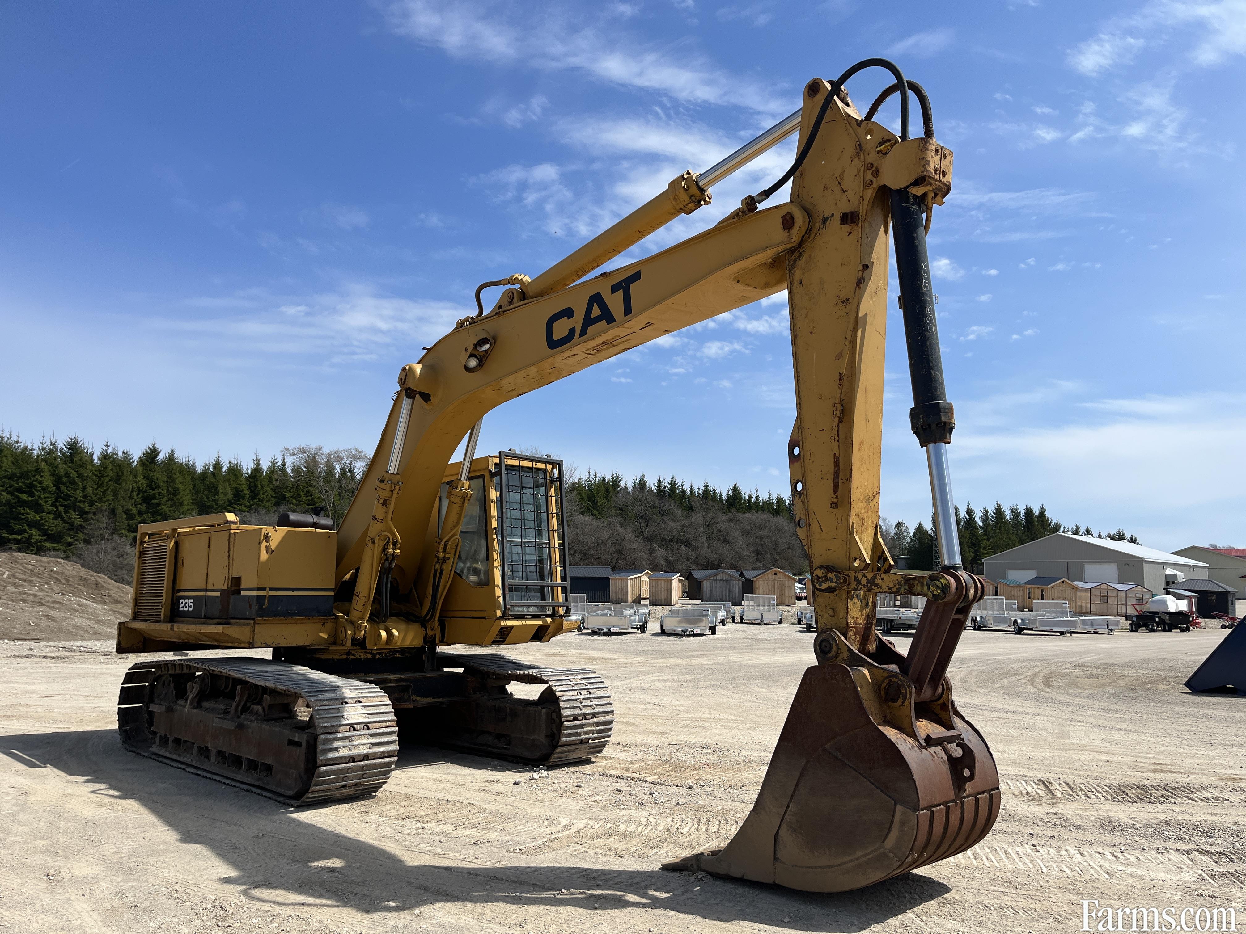 1973-1986 Caterpillar 235 excavator powered by a cat diesel engine. Enclosed cab with glass intact. Hour meter reads 4898. Located in Maxwell Ontartio