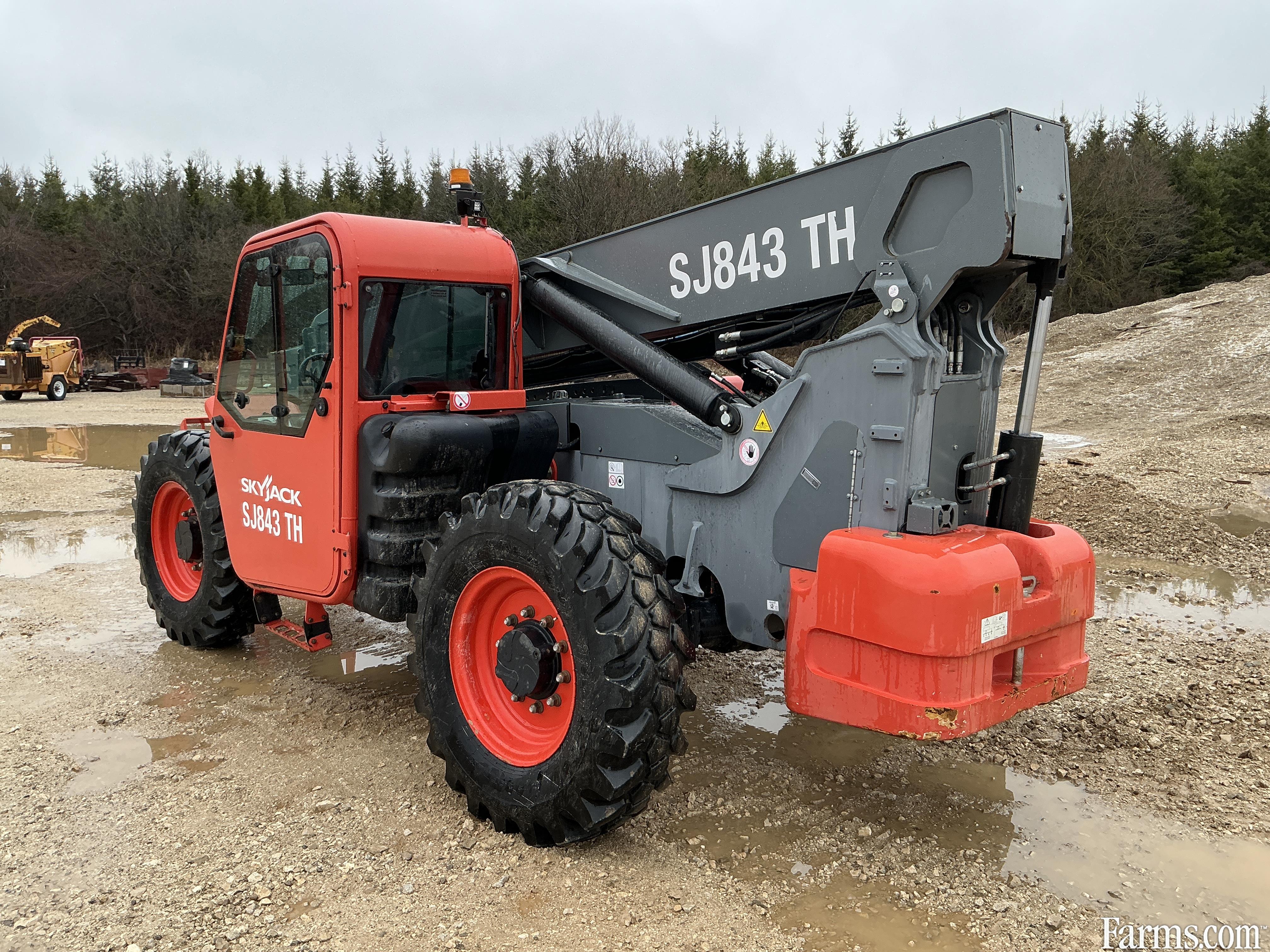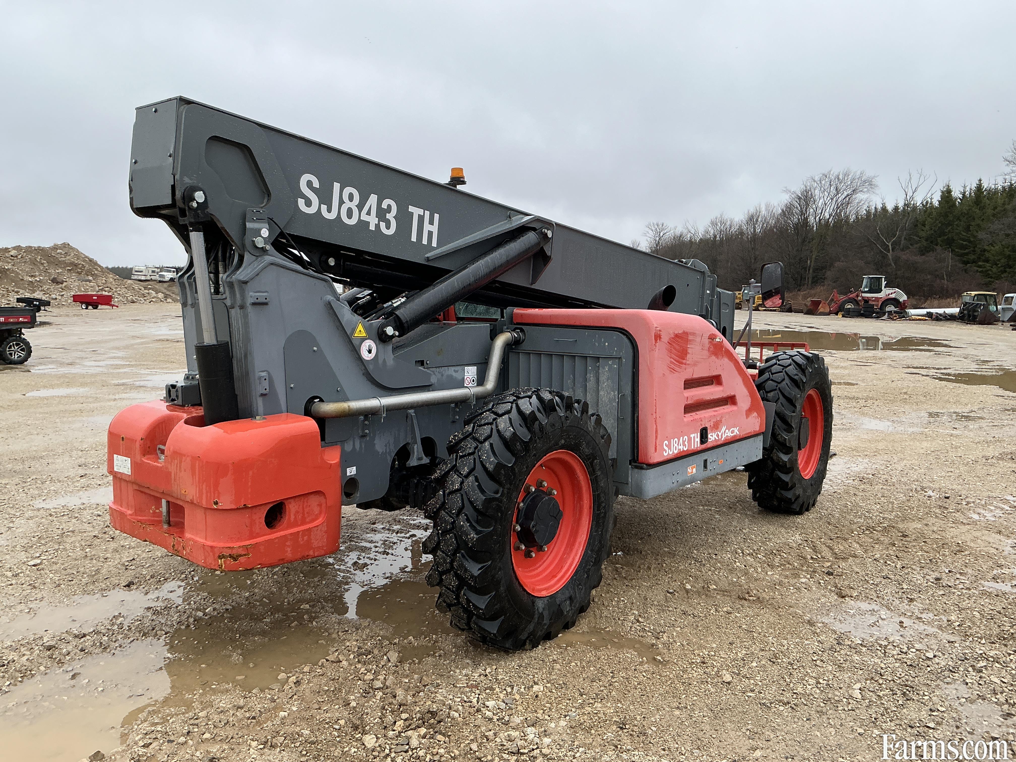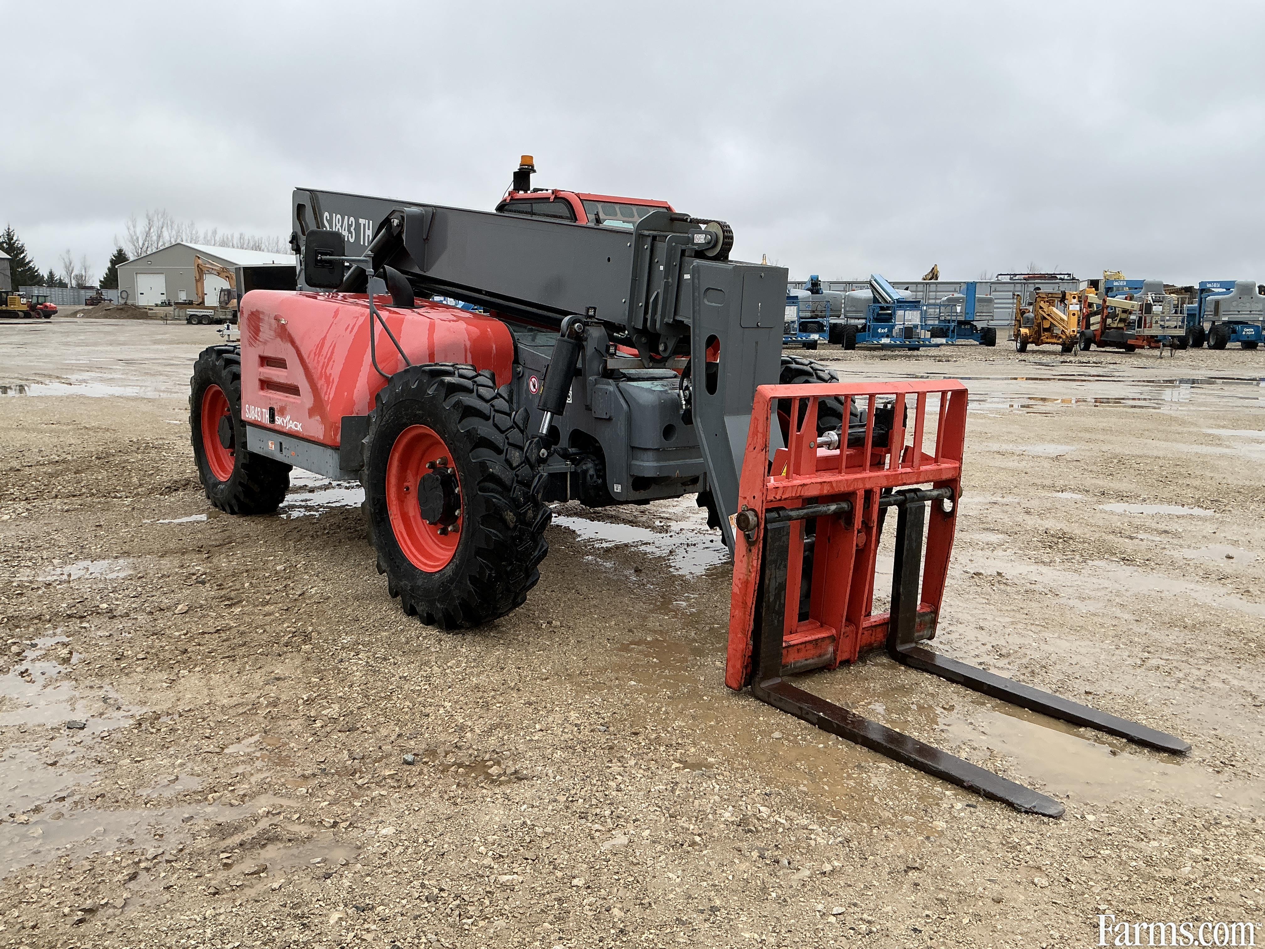 2018 Skyjack SJ843TH zoom boom is powered by Deutz diesel engine. Unit is equipped with manual quick connect and hydraulic tilt forks . Enclosed heated cab. Maximum lift capacity is 8000lbs and 43 feet of height reach. Has a forward reach of 28’. Machine operating weight is about 23000lbs. 4 wheel drive with 2 wheel, 4 wheel and crab steering. Valid safety. Hour meter reads 1574. Located in Maxwell Ontario.