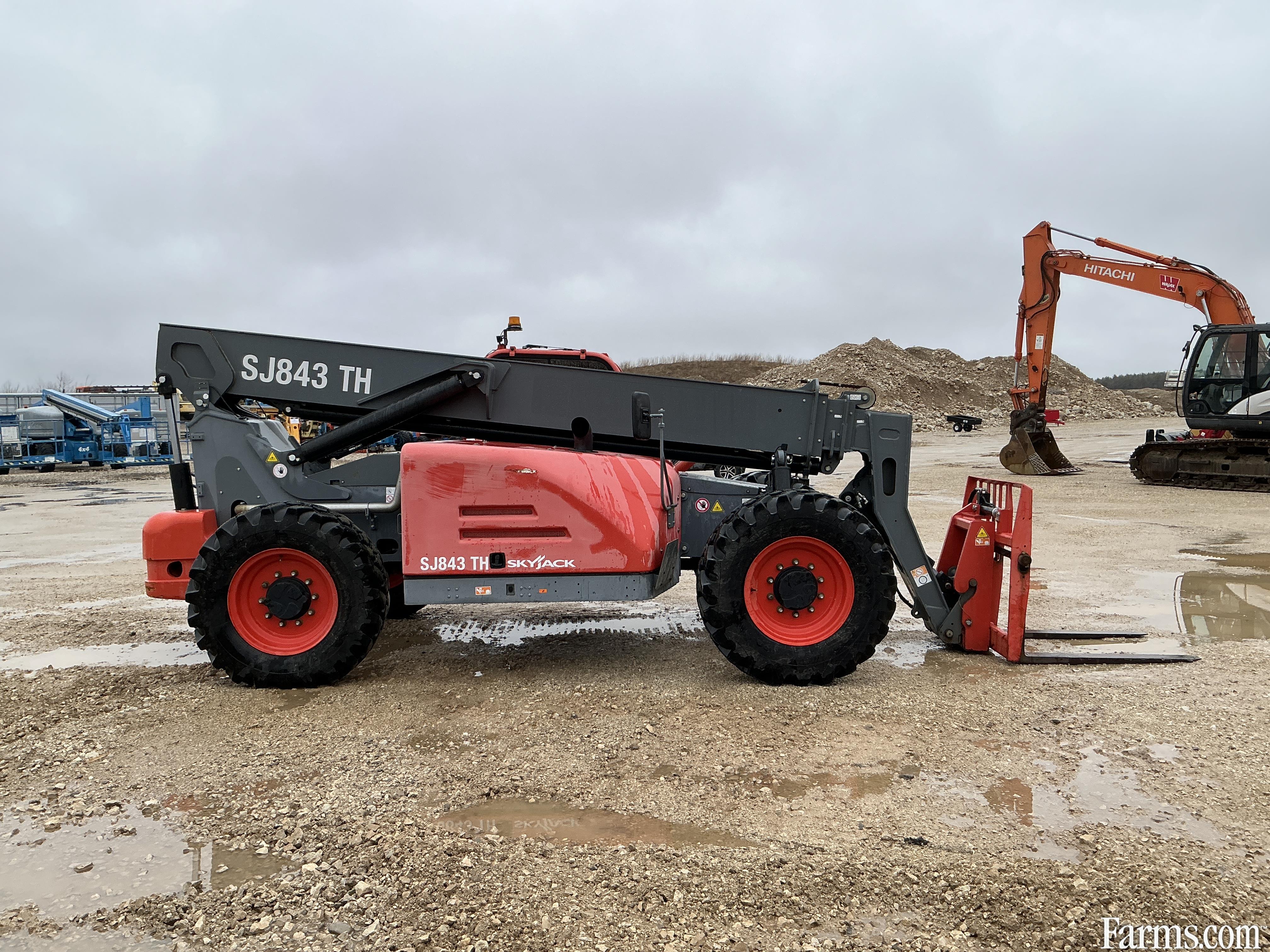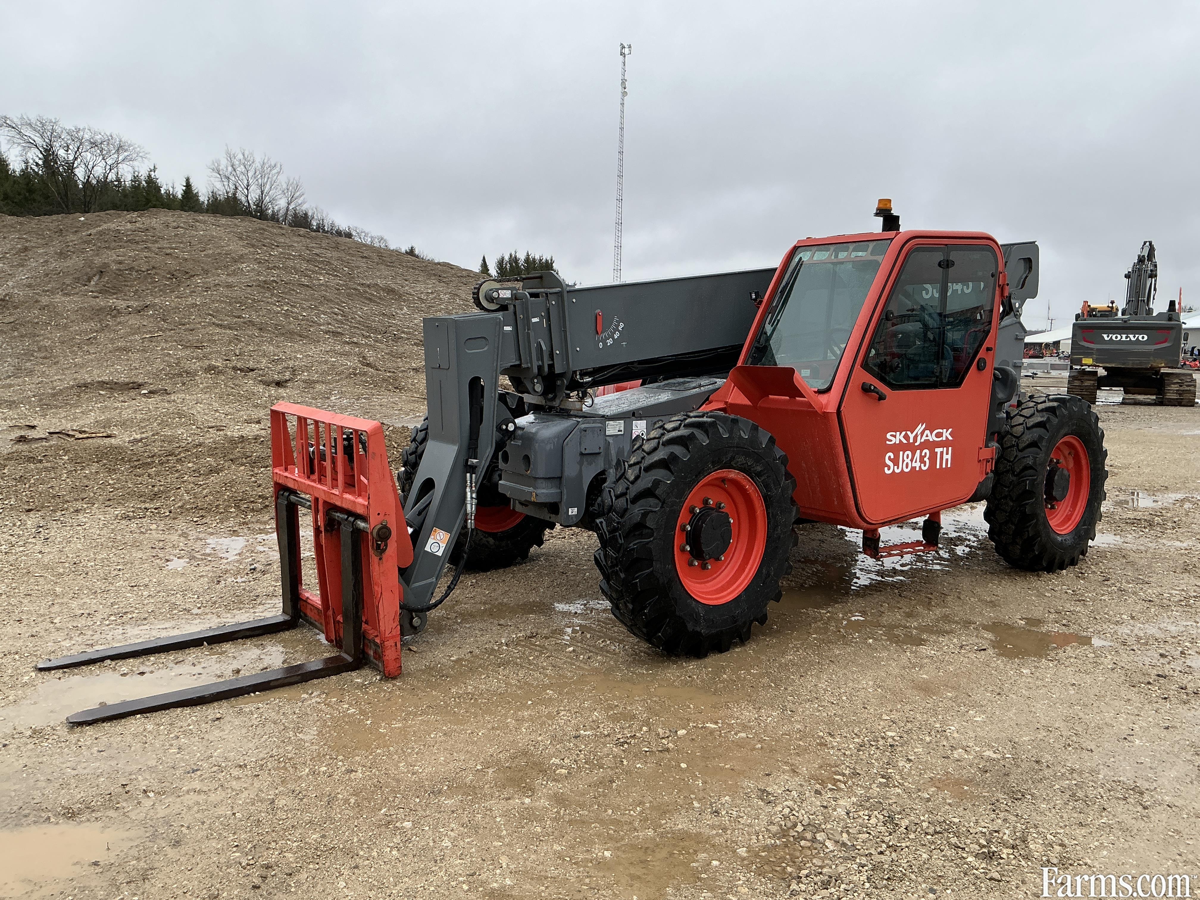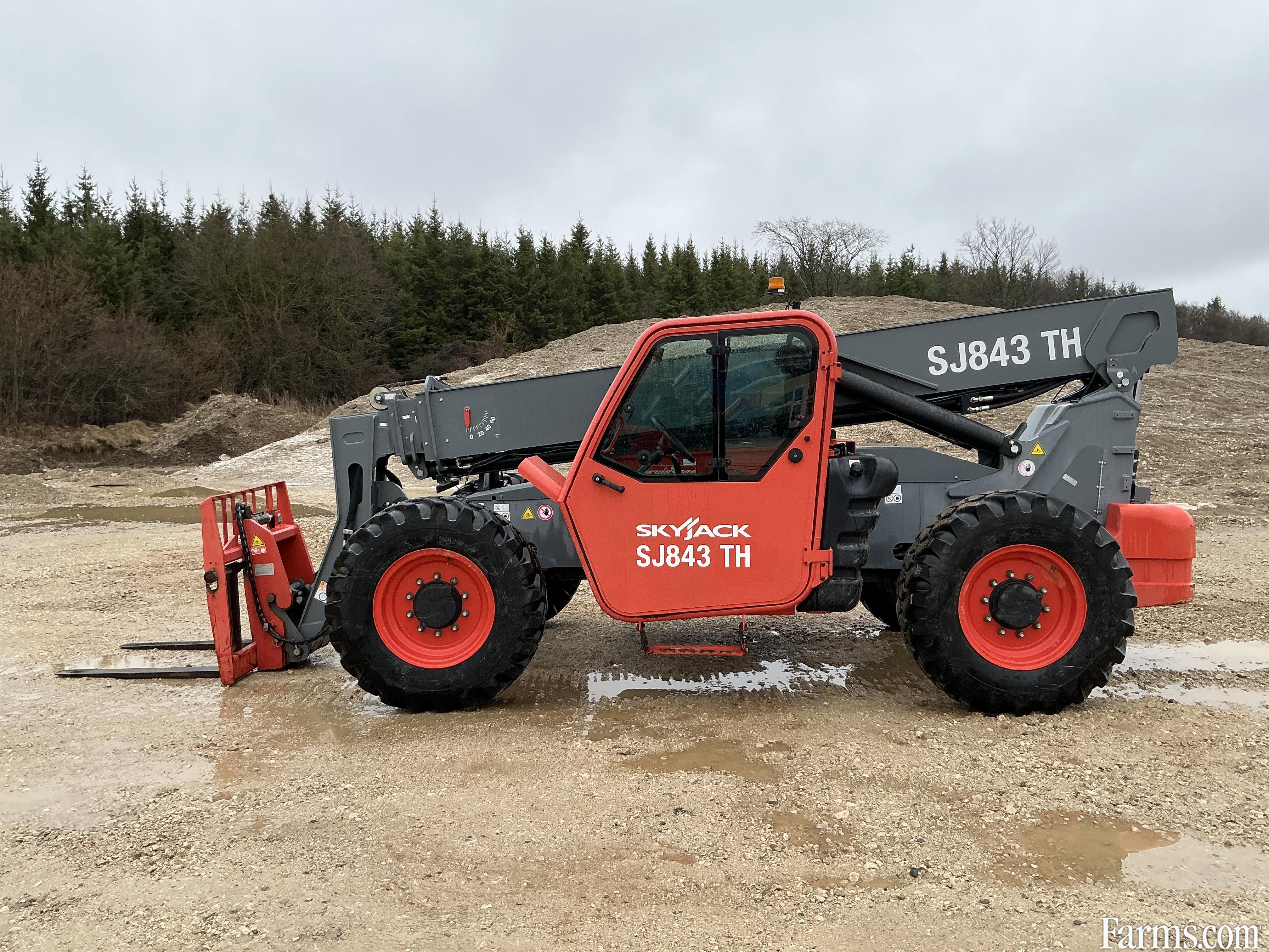 2018 Skyjack SJ843TH zoom boom is powered by Deutz diesel engine. Unit is equipped with manual quick connect and hydraulic tilt forks . Enclosed heated cab. Maximum lift capacity is 8000lbs and 43 feet of height reach. Has a forward reach of 28’. Machine operating weight is about 23000lbs. 4 wheel drive with 2 wheel, 4 wheel and crab steering. Valid safety. Hour meter reads 1574. Located in Maxwell Ontario.