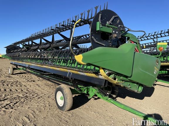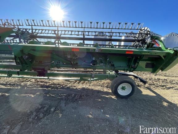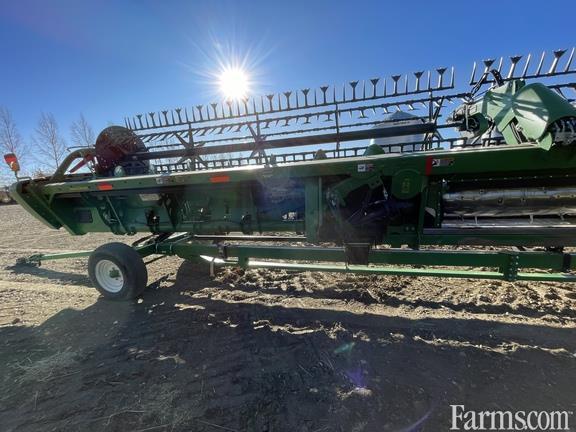 Specifications: Width 40'; Flex-draper w/Double Knife Drive; Split w/Fore/aft & Lodged Crop Finger Kit; 18" Upper Cross Auger; Header Height Sensing; Poly Skid Shoes; Spare Knife; Cutterbar Poly; John Deere Sts/s Series Adapter;