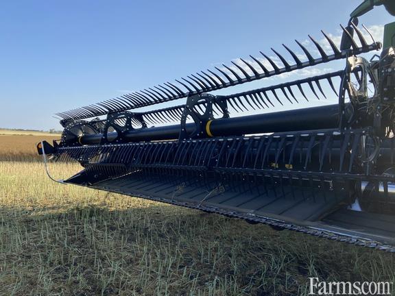 Options: Flip Over Reel, Platform Kind: Flex/Draper, Platform size: 40 Feet, Specifications: 40'; Flex-Draper w/ Double Knife Drive; Split Reel w/ Fore/ Aft & Flip Over Kit & Lodged Crop Finger Kit; 12" Upper Cross Auger; Header Height Sensing; Poly Skid Shoes; Spare Knife; Integrated Transport; Cutterbar Poly; Contour Buddy Wheels; John Deere STS/S Series Combine Adapter;