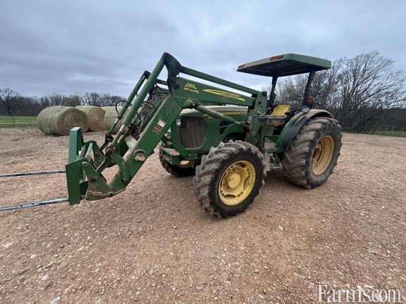 2010 John Deere 5105M Utility Tractor - 5160 hours, PowrReverser Plus 32F/16R, MFWD, 540/540E PTO. Deluxe isolated open operator station, horizontal side exhaust. Electrohydraulic hitch w/ LH fender control, telescoping draft links. Dual rear valves + dual mid valves w/ joystick control. 18.4R30 rear radial tires, 12.4R24 front radial tires. Wide tire setup, cold weather package.
