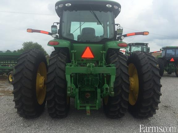 Type: Row Crop Tractors , Cab; Front Axle : MFWD; Transmission : Power Shift; Guidance-ready : Yes; Rear PTO : 540/1000; Rear Tires : Duals; Tire Width : Mid; Loader : No; 16F/5R Speed PowerShift Transmission 42 km/h (26 mph); GS3 CommandCenter, 7" Color Display; Premium CommandView II Cab with Active Seat; Deluxe Radio Package; 227.1 lpm (60 gpm) 85 cc Hydraulic Pump Displacement; Four Premium Remote Selective Control Valves with Premium Couplers and High Pressure Relief Levers; 45 mm (1-3/4 In.) 1000 rpm (20 Spline) with 35 mm (1-3/8 In.) 540 (6 Spline) / 1000 (21 Spline) rpm PTO; 6169 kg (13,600 Lbs.) Capacity 3-Point Hitch (Cat 3/3N) with Sway Blocks and Quick Coupler ; Cat. 3 Adjustable Swinging Drawbar with 38 mm (1.5 In.) Pin; 110 mm (4.33 In.) Diameter x 3010 mm (118.5 In.) Length withDouble Taper Wheel Hubs; 480/80R46 In. 158A8 R1 Radial in Dual Wheel Configuration; 1300 Series Mechanical Front Wheel Drive - Group 47 Rear/Group 42 Front; 420/90R30 In. 142A8 R1 Radial in Single Wheel Configuration; Deluxe Lighting; Fenders, Deluxe Pivoting Front for MFWD or ILS -480 mm (18.9 In.) Wide; Cold Weather Start Kit; John Deere PowerTech PSX 9.0 L (549 cu. In.) 6 Cyl IT4 / Stage 3b Compliant Diesel Engine; Weight, Front Support - Less WeightsÂ
