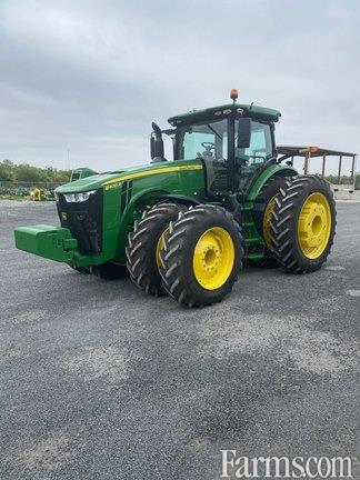 Front Axle: MFWD w/ Suspension, Guidance Receiver: No, Guidance-ready: Yes, Loader: No, Rear PTO: 1000, Rear Tires: Duals, Tire Width: Mid, Transmission: e23, Specifications: e23 Transmission 42 km/h (26 mph) with Efficiency Manager; 4600 CommandCenter; John Deere ActiveCommand Steering (ACS); CommandCenter AutoTrac Activation; 4600 Processor; Premium CommandView III Cab with Cab Suspension; Premium Radio Package; Right-hand Reverser Bump-Shift-Type Transmission Controls; John Deere PowerTech 9.0 L (549 cu. in.) 6 Cylinder Tier 4/Stage V Compliant Diesel Engine; 321 L/min (85 gpm) Dual Hydraulic Pump; Five Premium Rear Remote SCVs with Electrohydraulic (EH) Controls, Premium Couplers, and High Pressure Relief Levers; 45 mm (1-3/4 in.) 1,000 rpm (20-spline) PTO; 9,072 kg (20,000 lb) capacity 3-Point Hitch (Cat 4N/3) Hitch with Sway Blocks and Quik-Coupler; Category 4 adjustable Swinging Drawbar with 50 mm (2 in.) Pin with heavy duty support; 120 mm (4.72 in.) diameter x 3010 mm (118.5 in.) length Double Flat Wheel Hubs; VF480/80R50 166B R1W Very High Flexion Flexion Radial in Dual Wheel; ILS with hydraulic differential lock, fully-enclosed driveline and Group 48 Rear Tires; VF420/85R34 154A8 R1W Very High Flexion Radial in Dual Wheel Configuration - Eight Position; Premium Lighting; Fenders, Pivoting Front - 480 mm (18.9 in.) Wide; Ethernet Switch; Leather Comfort Package; Actively Cooled Refrigeration Unit 6.4 L³ (391 cu. in.); Auxiliary Hydraulic Connections - 1/2 in.; Second Rotary Beacon Light; Weight, front support with twenty-two suitcase weights; One Pair 625 kg (1378 lb); One Pair 70 kg (154 lb) Starter Weights and One Pair 900 kg (1984 lb) Weight for the Outside of Dual Wheel; Call: Alan Kruckemeyer - 830-591-6972 cell;