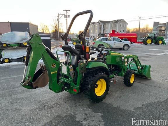 low hour 25 HP, 2000 series compact tractor, hydrostatic transmission, front end loader, 3-point hitch and 540 PTO, rear mounted 260B backhoe with digging bucket, 3-point hitch mounted 54" wide snow blower