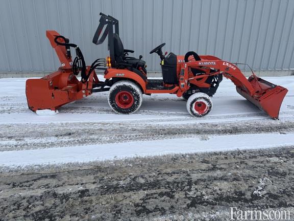 Kubota BX 2680, 25HP diesel, turf tires, front end loader with skid steer Q/A, 2 rear scv's, 54" wide mid mounted mower, rear 30point hitch and 540 PTO and a 54" wide hydraulic chute adjust snow blower