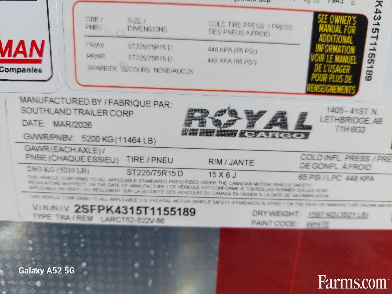 Axle Capacity: 5,200 lb