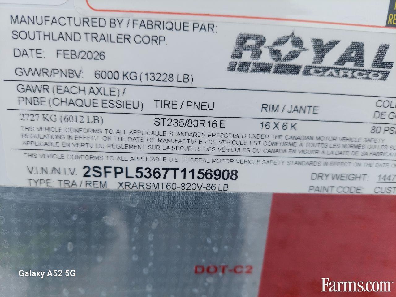 Axle Capacity: 6,000 lb