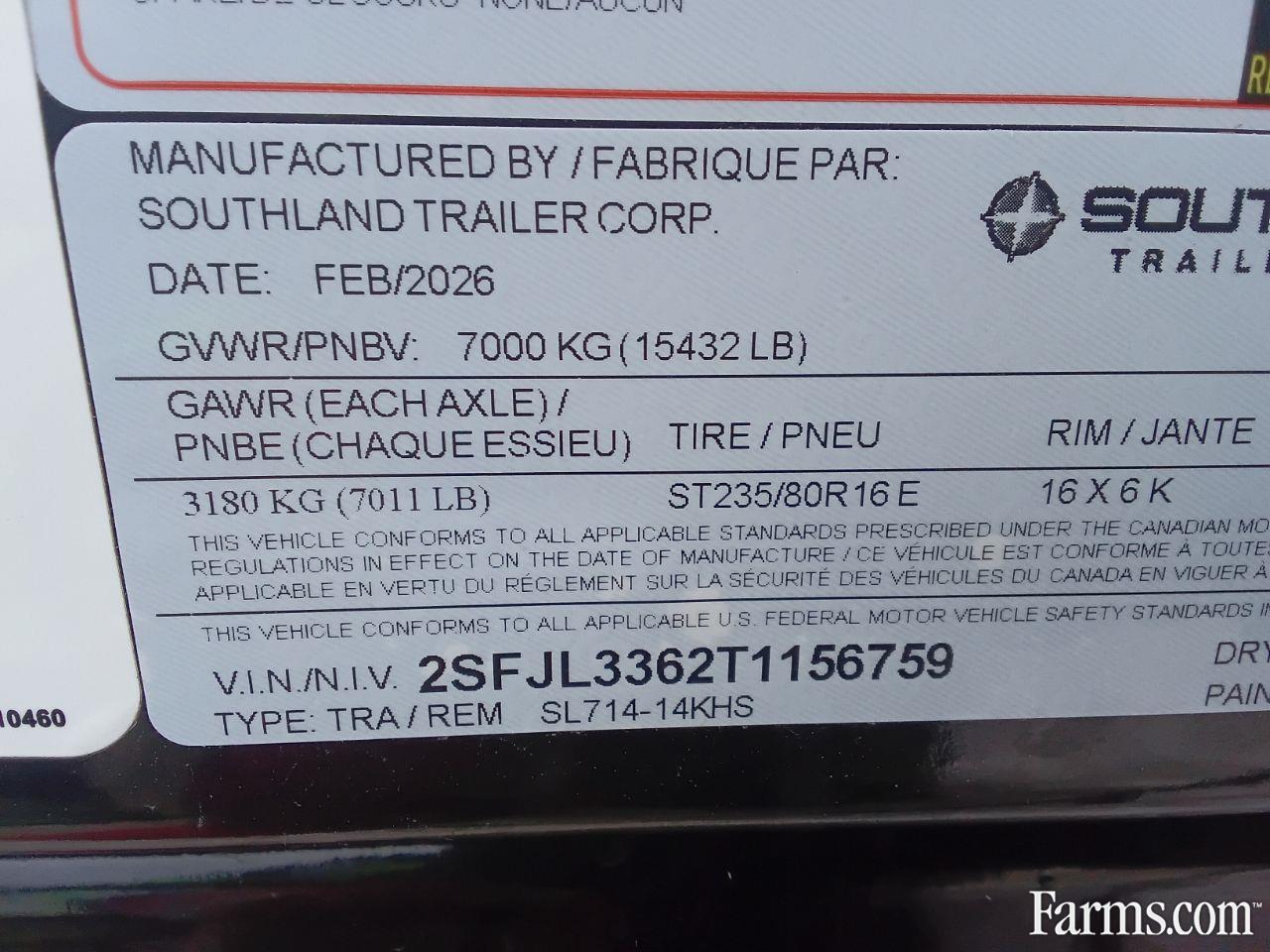 2026 Southland 14K 7' x 14' High Side Dump Trailer