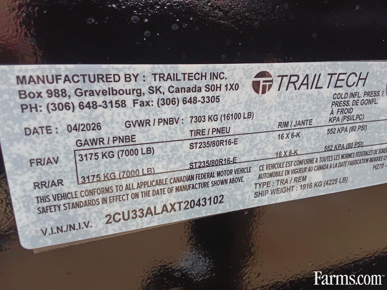 2026 Trailtech 8'6" x 20' Deckover Trailer